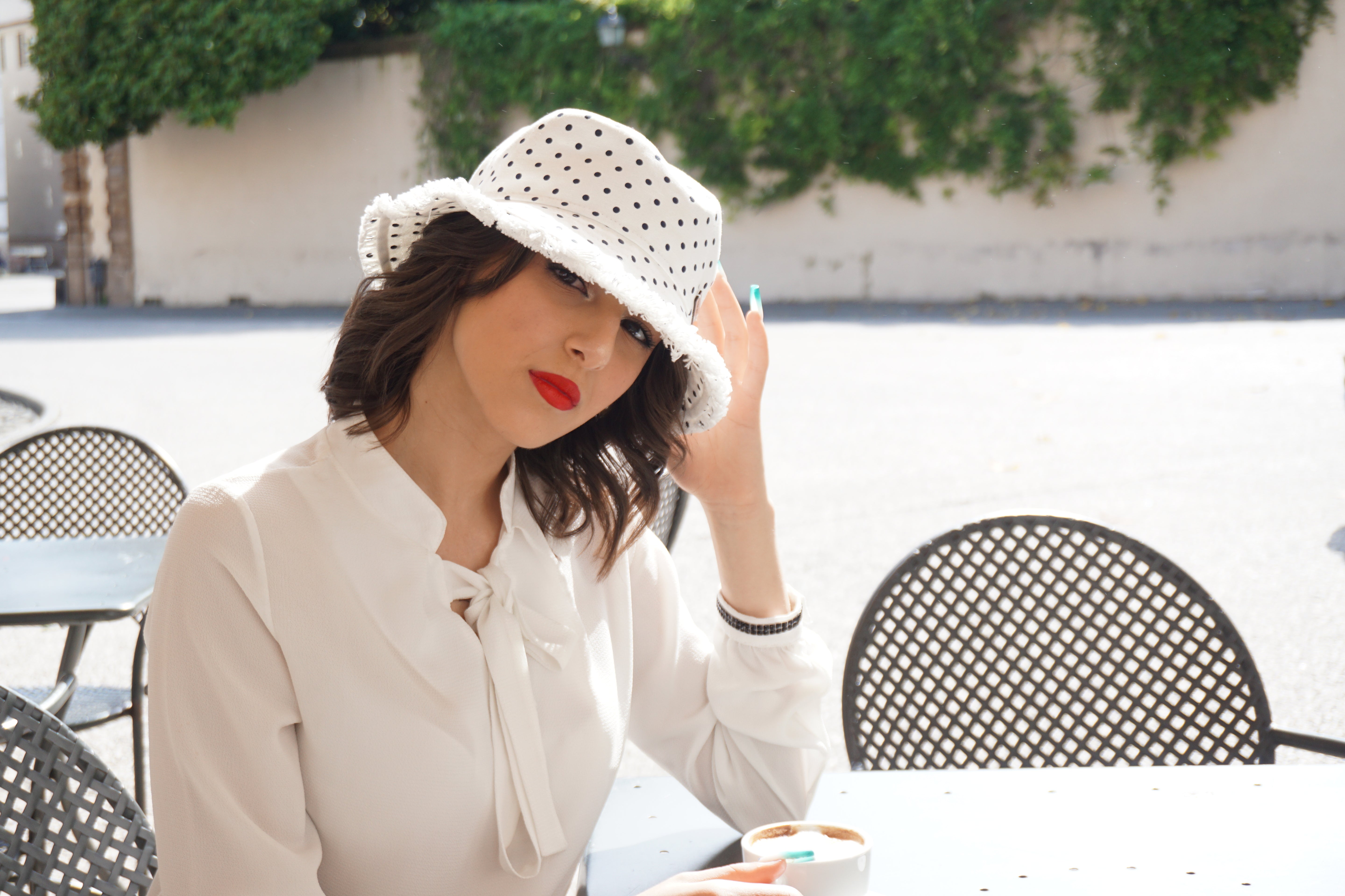 Questo cappello a tesa molto ampia è la risposta gentile al sole che batte e allo sguardo che cerca eleganza. Realizzato in tessuto certificato CFS (Circular Fabric Standard) proveniente da sovrapproduzioni, con fantasia a pois tono su tono, unisce lo spirito leggero degli anni '50 a una linea contemporanea e sofisticata.